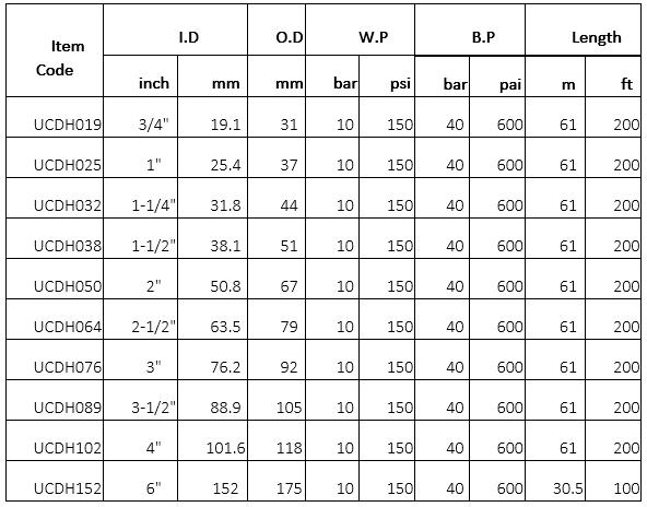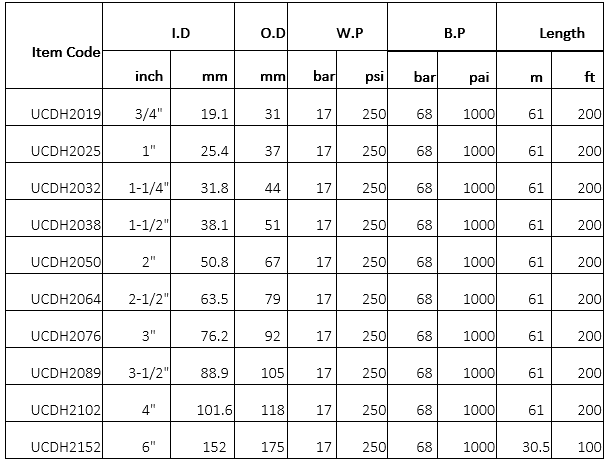 The Ultra High Molecular Weight Polyethylene lined chemical discharge hose is capable of handling 98% of all common industrial chemicals, solvents, and corrosive liquids in pressure, gravity flow, and suction services. This high quality hose is used in transfer of many industrial strength acids, chemicals and solvents in applications to 120℃ and 250 psi. It is an industrial chemical hose commonly used in the industry today. Non-staining UHMWPE tube.