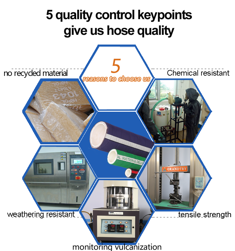 Production: Advanced technology and equipment to make the best quality rubber chemical suction and discharge hose.
